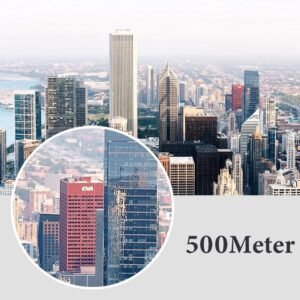 - Com uma gama de até 2000 metros, estes binóculos permitem detectar objetos distantes e desfrutar de um campo de visão mais amplo.