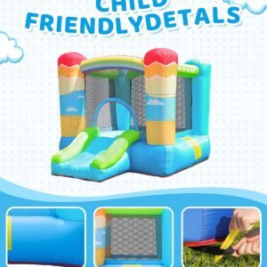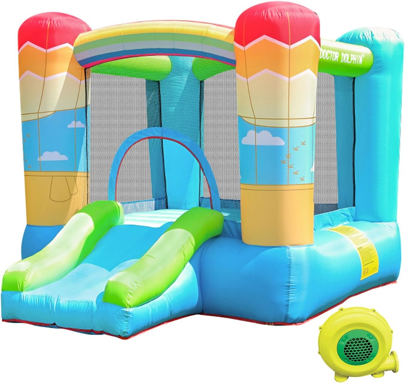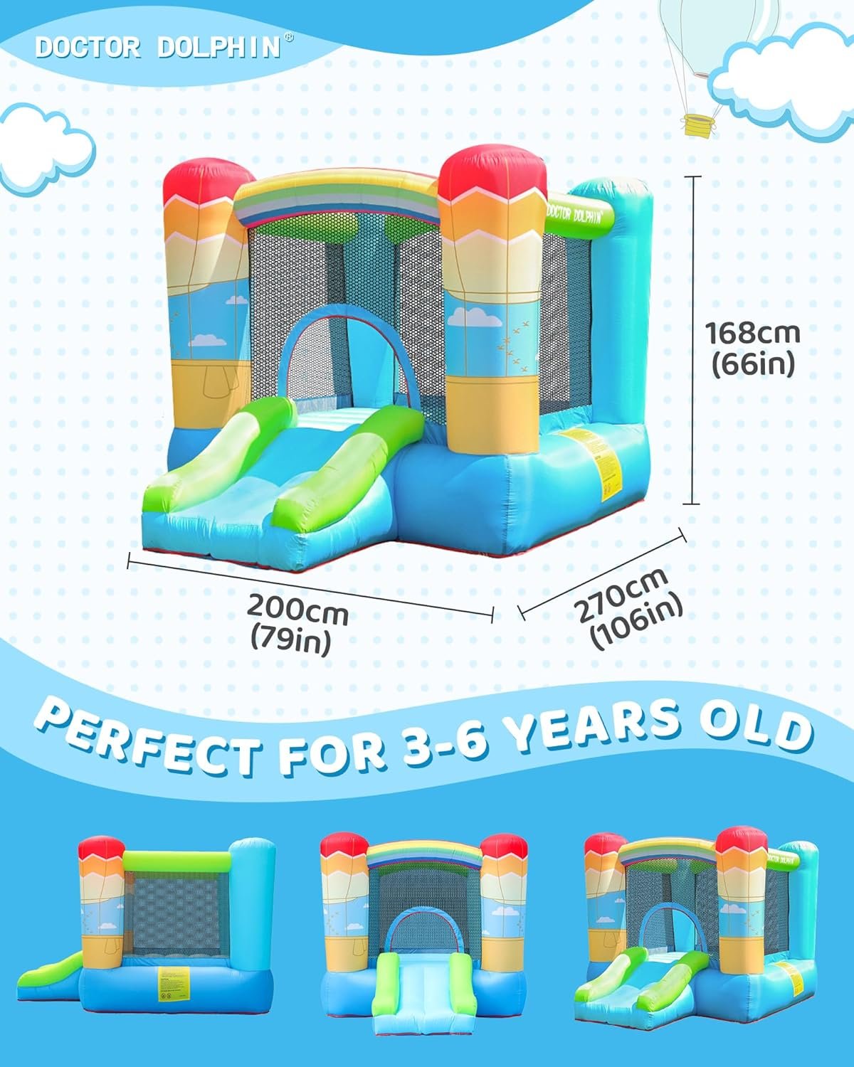 - Diseño infantil: nuestra casa de rebote de diapositivas es el mejor regalo de cumpleaños para tus dulces. El arco iris está arriba, y los globos de aire caliente están a ambos lados de tu hijo.