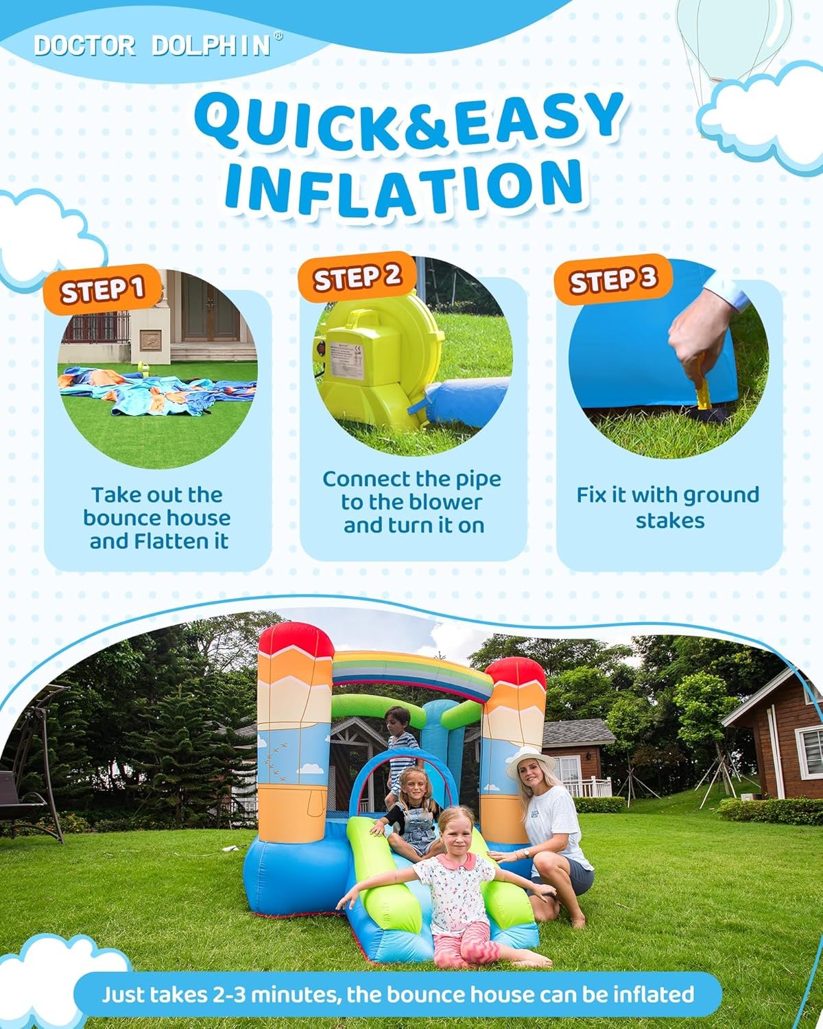 - Kit de accesorios perfecto: cada artículo está equipado con un soplador de aire de 350 W, bolsa de transporte, algunos parches de reparación y estacas para césped. Todos los accesorios están preparados para ti, ahorrando tiempo para ir a la tienda.