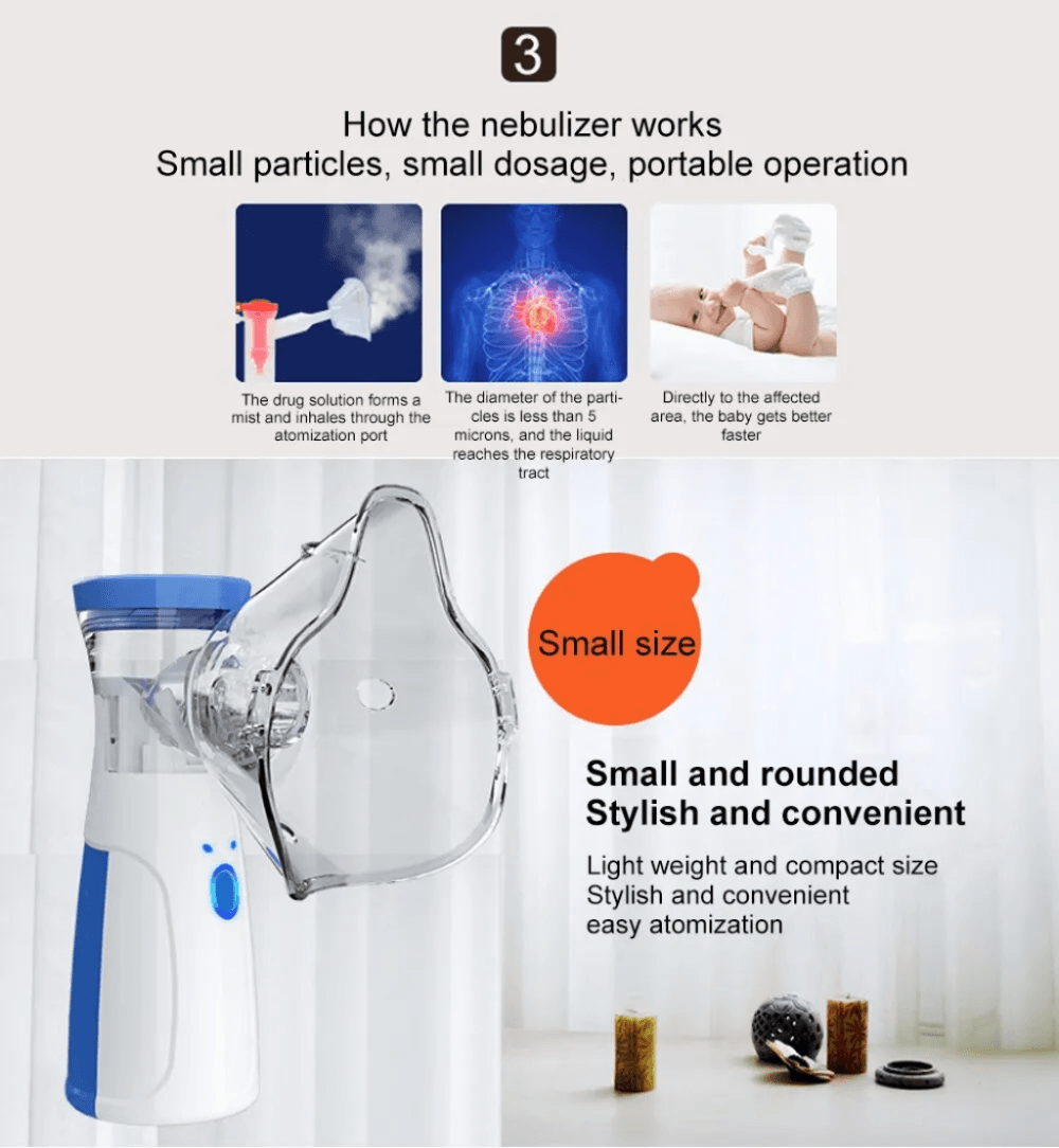 Portátil e Handheld: Leve este nebulizador com você onde quer que vá. Seu tamanho compacto facilita o transporte em sua bolsa ou bolso.