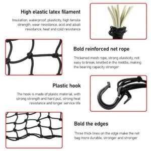 Mantenha Sua Carga Segura: Essencial para motocicletas, scooters, ciclomotores e outros veículos, esta rede elástica com 6 ganchos é perfeita para garantir que você não perca sua carga durante o trajeto.